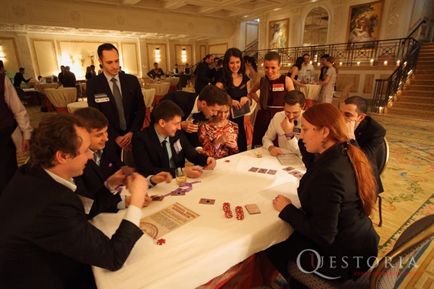 “Секретные материалы” – одна из самых популярных квесторий для корпоративов. Она уникальна тем, что в нее можно играть компанией в 150 человек! Скажем честно, она нам самим очень нравится: в ярко освещённом зале играет музыка, роскошные кавалеры в смокингах целуют ручки дамам в вечерних туалетах, азартные гости не отходят от игровых столов, ну и, конечно, вино и буфет… Сегодня мы решили на ее примере приоткрыть завесу тайны и рассказать, как мы готовим для вас игры.